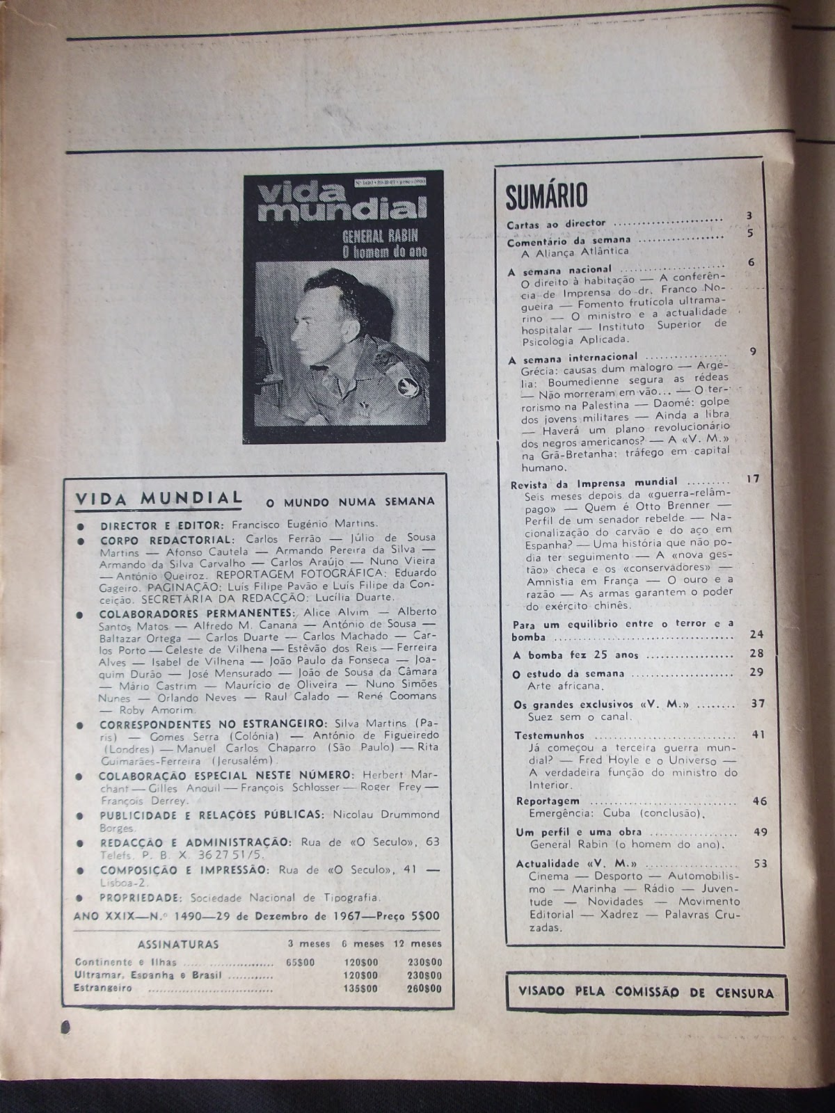 - 1490​,​ de 29/12/1967​ ​General Rabin - O Homem do ano​ - Preço: 4,99€​​