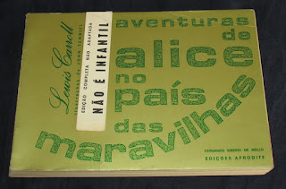 O fantástico texto de Lewis Carrol numa edição de grande originalidade, em formato oblongo e grande cuidado na apresentação gráfica. Introdução e notas, de autoria de Manuel João Gomes, sendo as últimas impressas manuscritas. Tradução de José Vaz Ferreira e Manuel João Gomes. Arranjo gráfico de José Marques de Abreu, numa impressão a sépia em papel creme. Uma das carismáticas e cuidadas edições assinada por Fernando Ribeiro de Mello.